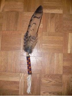 Fächer aus der Handschwinge eines Bussardes. Der Fächer ist etwas speziell bemalt, halt mal etwas unindianisch... :-))