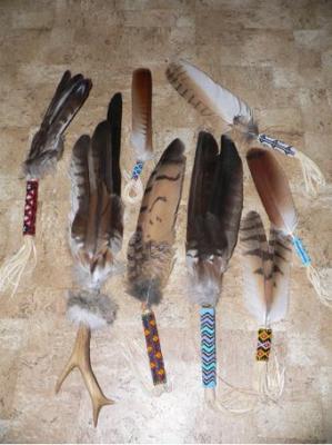 Hier eine Zusammenstellung an Fächern und Gebetsfedern, die ich letztens weitergegeben habe. Von links nach rechts: