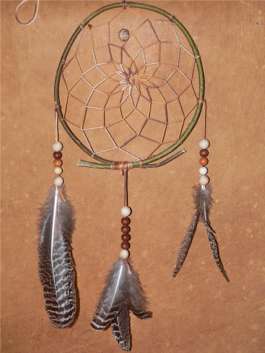 Traumfänger mit Bussard-Flaumfedern