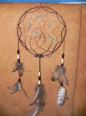 sehr spezieller Traumfänger mit Flaumfedern eines jungen Habichtes